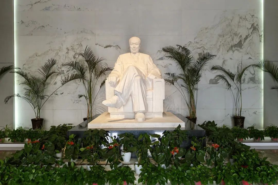 青马班学员们刚踏入纪念馆序厅,就被乌兰夫同志的汉白玉坐像深深吸引住了目光。坐像正面写着“久经考验的共产主义战士、党和国家优秀的领导人、杰出的无产阶级革命家、民族工作领导人”,这简短的话语承载了乌兰夫同志光辉一生的重量。在庄严肃穆的坐像下,青马班学员感受到了乌兰夫同志炽热的共产主义情怀,心中涌起万丈豪情。