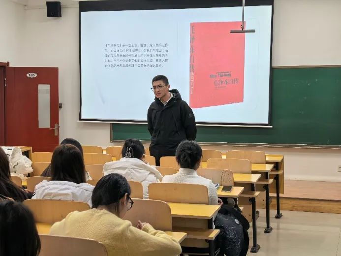 本次读书分享会王老师为我们讲解了《红岩》《红星照耀中国》《毛泽东传》三本红色书籍并与公管院青马班学员一同分享心得。首先,王老师以《红岩》歌颂了以许云峰、江姐为代表的中国共产党人坚贞不屈、向往光明的革命精神和英雄气概,以红岩精神启示青马班学员要向革命先烈们学习,激励青马班学员传承革命精神,为理想和信念奋斗不息;其次,王老师以《红星照耀中国》为我们描绘了红军战士坚韧不拔、英勇卓绝的伟大斗争,以及他们的伟大而平凡的精神风貌,告诫青马班学员要以国家利益为先,以民族利益为先,养成以人民利益为先的大公无私精神;最后,王老师以《毛泽东传》为我们客观、详细的讲解了中国伟大领袖毛泽东同志从青年时代到成为伟大领袖的过程,以毛主席的伟大历程激励青马班学员坚持党的领导,担当为中华民族伟大复兴而不懈奋斗的时代使命,为中华民族伟大复兴贡献自己的磅礴力量。