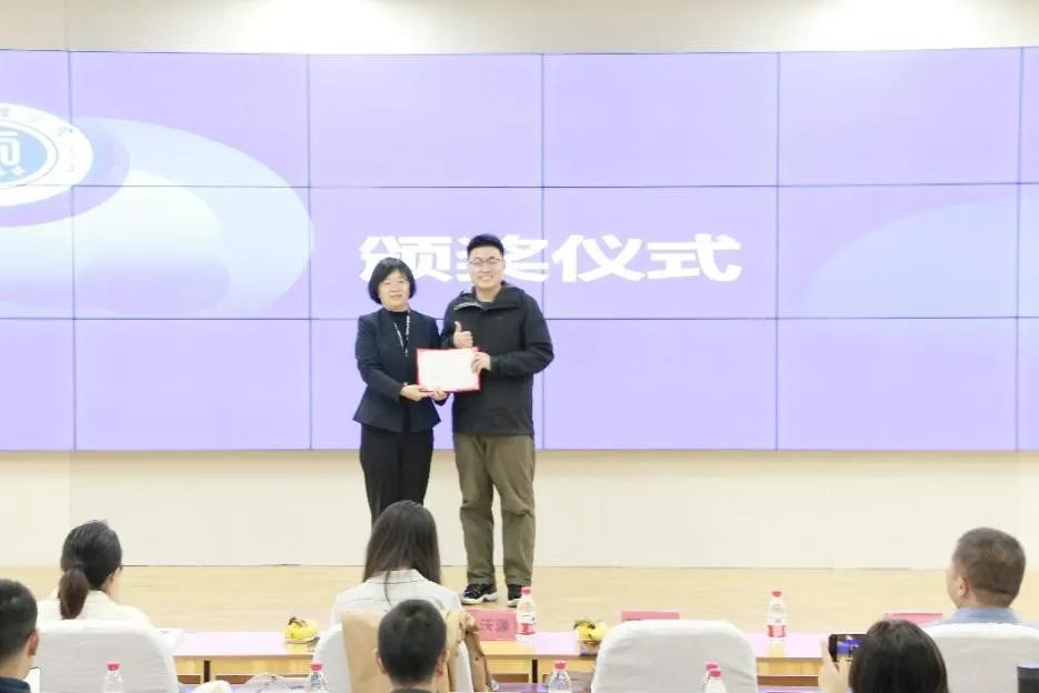 那岚业副院长为论坛一等奖的获得者刘泽霖颁发获奖证书