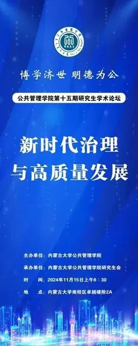 11月15日,yl6776永利集团第15期研究生学术论坛于永利官网南校区举办。本次论坛由yl6776永利集团主办,研究生会承办。论坛以“新时代治理与高质量发展”为主题,设1个主论坛和4个分论坛,分别对应行政管理、社会保障、公共政策、土地资源管理4个学科方向。本次论坛共设置了12个选题方向,面向院内硕博士研究生征文,以此促进学术交流与理论创新。