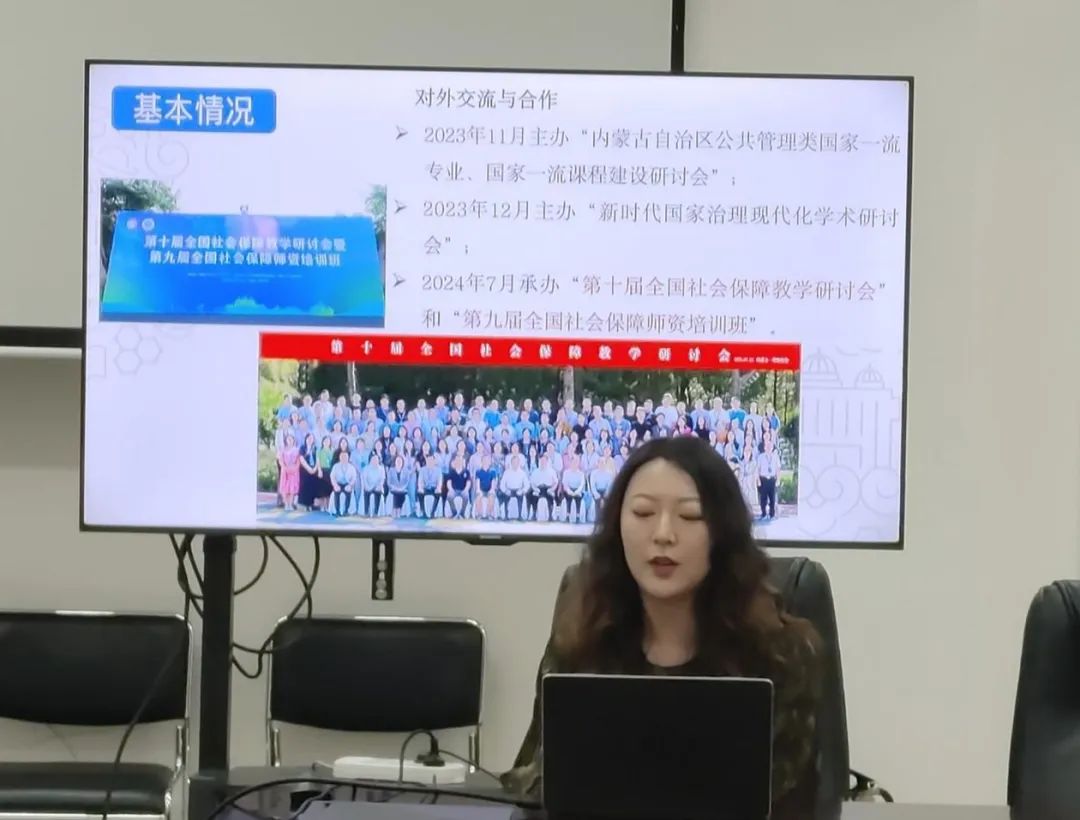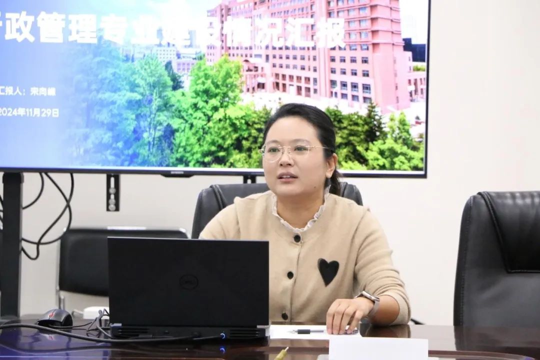 随后,行政管理学系主任宋向嵘、劳动与社会保障系主任陈旖旎分别向两位专家汇报了我院“行政管理”和“劳动与社会保障”两个国家一流本科专业建设点的基本情况、专业特色、建设过程中存在的问题以及未来拟采取的建设举措。