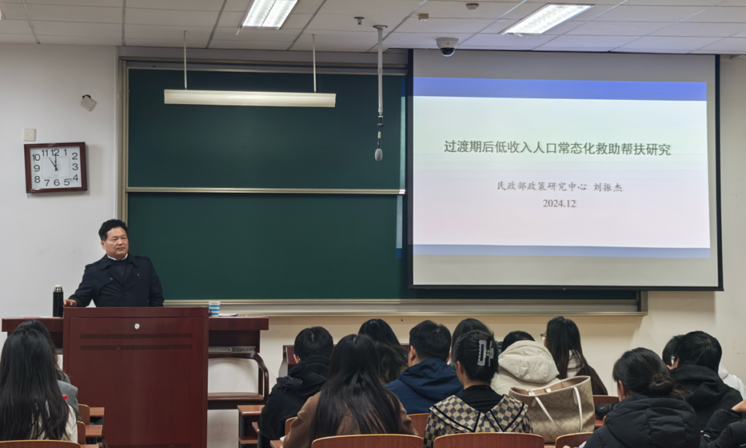 为加强学术交流,开拓师生学术视野,学院于12月6日在玉泉校区卓越楼0204举办第29期高端学术讲座。本次讲座特邀中国人民大学社会保障学博士、社会学博士后、民政部政策研究中心刘振杰研究员主讲《过渡期后低收入人口常态化救助帮扶研究》,讲座由副院长安华教授主持,劳动与社会保障系师生共同参与。