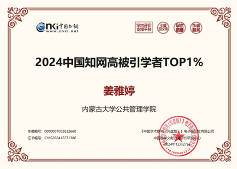 据悉,“中国知网高被引学者”遴选活动旨在客观、科学衡量并表彰近十年来国内科研成果丰富、学术影响力杰出的学者群体。经过定量数据统计、遂选方案评审、学科专家调研等前期筹备工作,现已形成“2024中国知网高被引学者”预发布名单。我院入选的4位教师在《管理世界》《民族研究》《新华文摘》等顶级期刊均有论文发表,在相关学科具有良好的学术声誉,他们的入选彰显了我院公共管理学一级学科的科研优势和学术影响力。