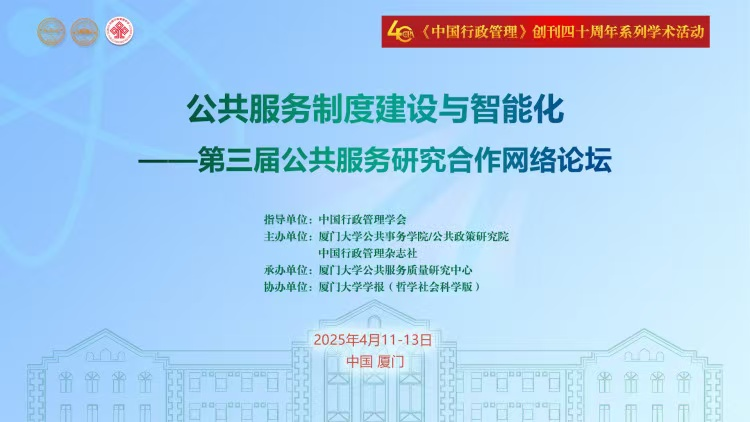 为深入学习和贯彻党的二十大和二十届三中全会精神,4月12日,在中国行政管理学会的指导下,由厦门大学公共事务学院、公共政策研究院会同《中国行政管理》杂志社携手举办的“第三届公共服务研究合作网络论坛”在厦门大学召开。来自中国行政管理学会、清华大学、中国人民大学、上海交通大学、复旦大学、永利官网的60余位专家学者及近100名师生代表参会。会议得到《管理世界》《中国行政管理》《行政论坛》《厦门大学学报(哲社版)》等多家期刊支持。