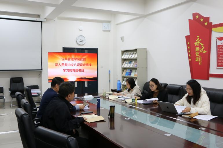 4月3日,学院党委举办的深入贯彻中央八项规定精神学习教育读书班开班,学院领导班子成员、党委委员、党支部书记和科级干部参加集中学习。读书班采取集体学习、班子成员带头领学、专题辅导讲座、研讨交流相结合的方式开展。学院党委委员、各党支部书记分别领学和导学《习近平关于加强党的作风建设论述摘编》中九个专题的内容,并结合各自工作实际开展交流研讨;4月14日,学院党委邀请学院政治学系教师乔福龙做题为《重温中央八项规定及其实施细则精神》的辅导讲座,并结合学查改问题清单以及学院工作实际进一步开展交流研讨。