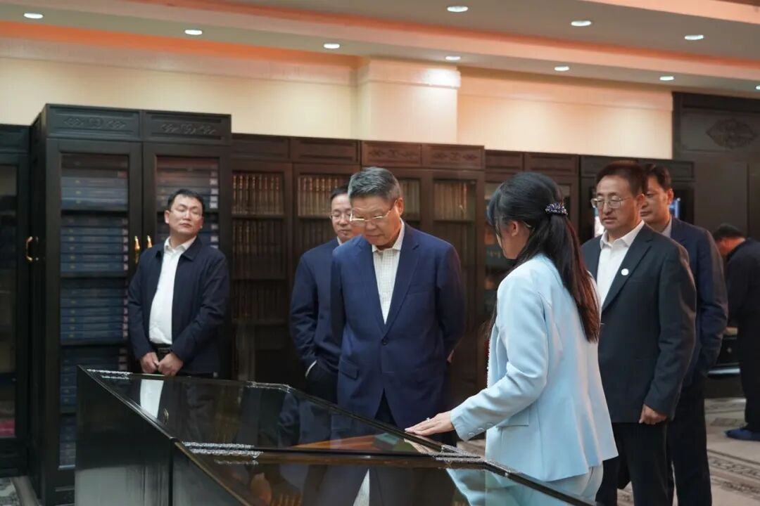 会前,调研组一行实地考察了我校图书馆蒙古文古籍文献展阅室、中华民族共同体研究中心成果展厅等。