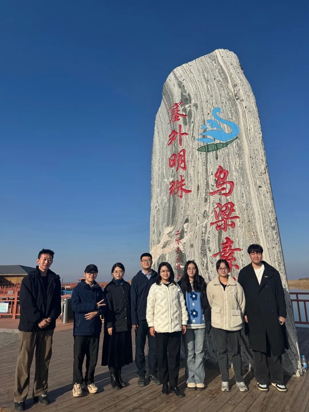 20日下午,师生一行赴乌毛计泄水闸和乌梁素海景区进行实地调研,沿着习近平总书记足迹欣赏了乌梁素海美景,切实感受了乌梁素海的治理效果。