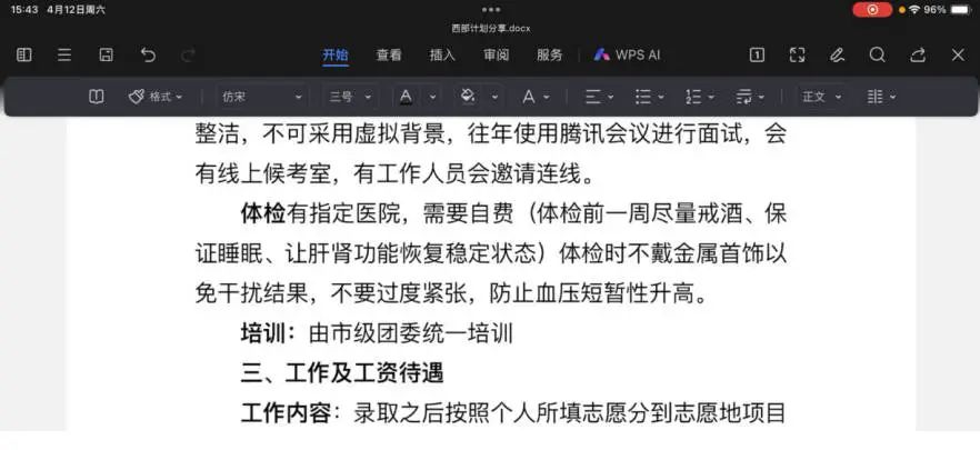 随后,针对工作内容以及政策待遇,张兴泽学长结合自己从事工作的实际情况为同学们进行了如实的分享,通过真实真切的经验和经历,加深了同学们对西部计划工作的认识。