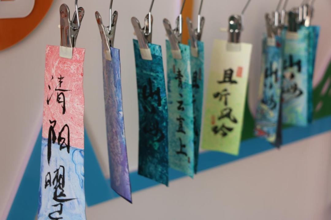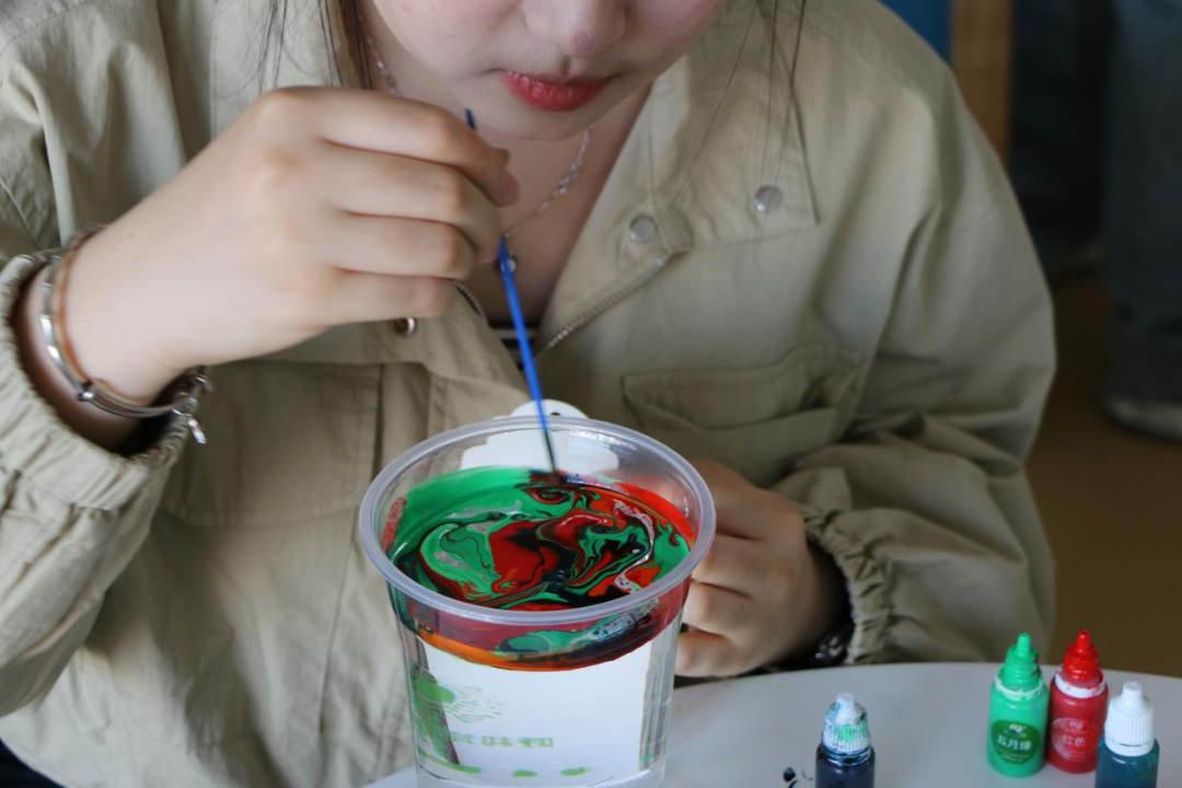 在书签DIY工坊里,同学们仿佛置身于创意与艺术的海洋。活动巧妙融入传统漆扇工艺元素,为同学们准备了丰富多样的颜料。大家充分发挥自己的想象力和创造力,将空白书签缓缓浸染到色彩中。待颜料晾干后,同学们又拿起笔,在书签上写下自己喜爱的词句或是励志话语,让小小的书签不仅成为阅读的实用工具,更化作激励自己前行的精神信物。
