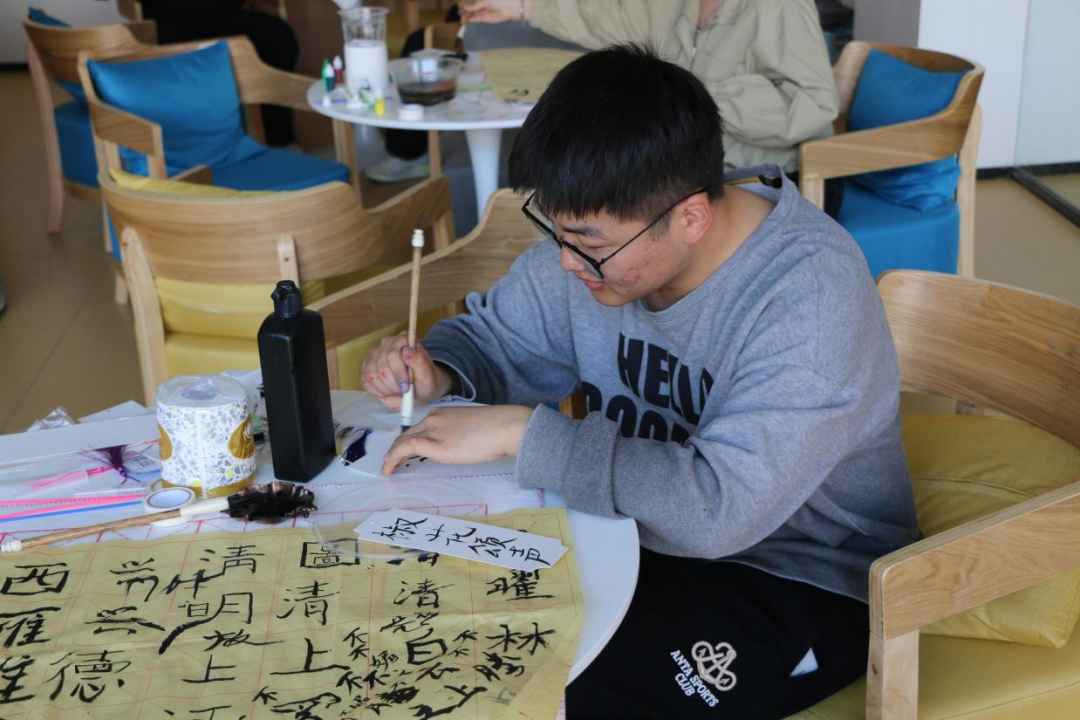除此之外,活动现场还贴心地准备了毛笔、宣纸等。同学们拿起毛笔,一笔一划间,尽显汉字的神韵与魅力,也进一步加深了对文字的热爱与理解。