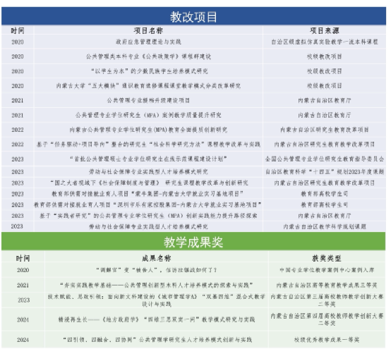 近三年,学院获批国家级、自治区级教学改革项目10余项,多项校级教学改革项目。部分成果荣获自治区级高等教育教学成果奖三等奖、校级研究生高等教育教学成果奖一等奖等多项奖励。