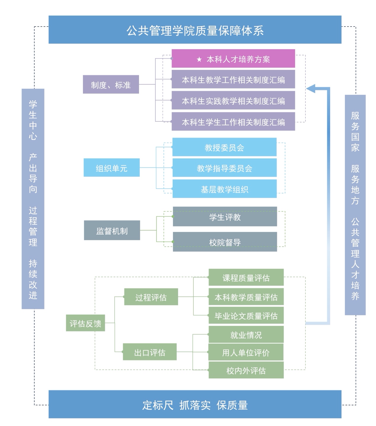 学院以“学生中心、产出导向、过程管理、持续改进”为理念,形成以“学院制度定标尺、单元组织抓落实、监督机制保质量”的质量保障体系。