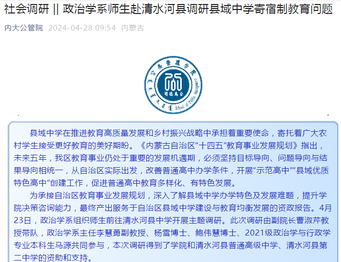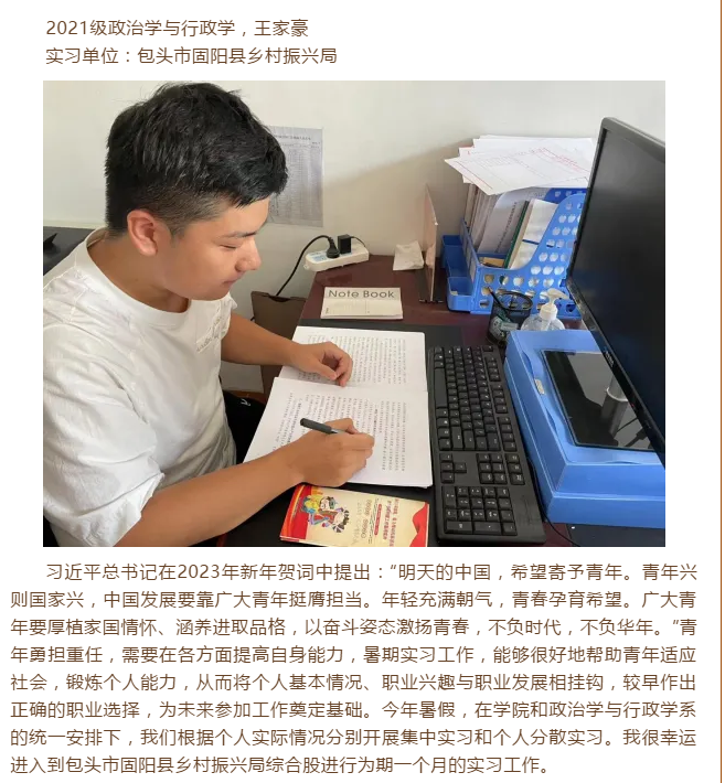 在学院的关怀和支持下,在政治学系老师们的指导以及2020级政治学与行政学同学们的共同奋斗下,2020级政治学与行政学专业毕业生目前在升研、考公以及就业等多方面取得佳绩:5位同学保研至985及211高校深造;12位同学成功考取211高校硕士研究生,其中3位同学升学至985高校;国考以及事业单位招录创历史新高,3位同学国考国家税务局、公安机关上岸、2位同学政法选调上岸、1位同学内蒙古广电局事业编上岸;教师招考也取得了佳绩,共有10位同学被鄂尔多斯、包头等教育局录取;还有10位同学已经在中铁十二局、中国能建、路尚集团呼和浩特分公司、陕西高途公司、北京少年儿童图书出版社、鄂尔多斯市晶澳太阳能科技有限公司、招商银行股份有限公司信用卡中心等企业找到心仪的工作。