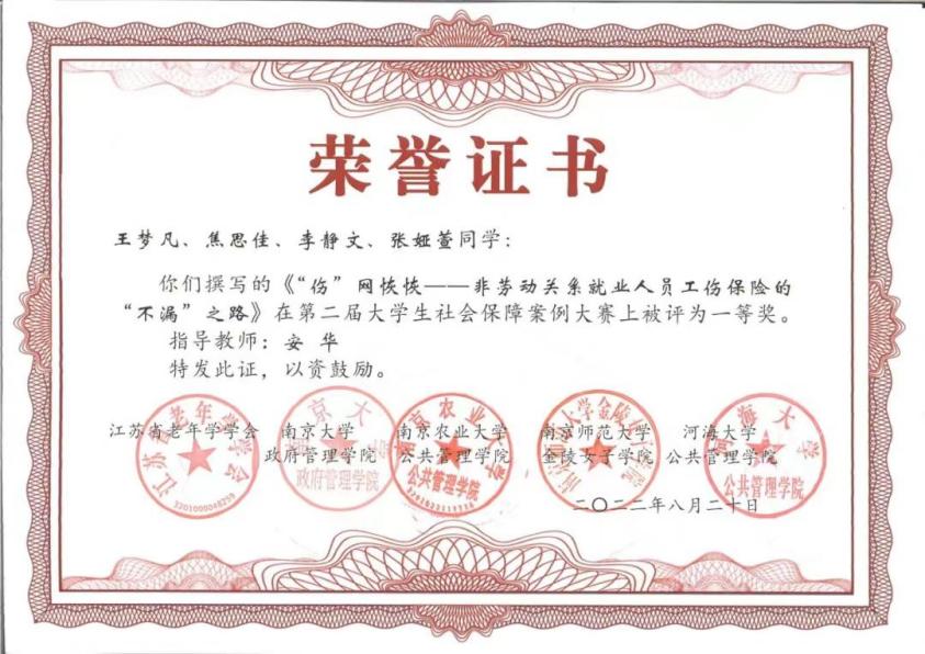 劳动与社会保障专业2021级学生获得“第二届大学生社会保障案例大赛”一等奖