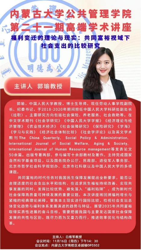 yl6776永利集团教授、博士生导师、院长,南京大学管理学博士、伦敦政治经济学院(LSE)访问学者,国家民委民族研究优秀中青年专家,内蒙古自治区“草原英才”,内蒙古自治区“新世纪321人才工程”第一层次,内蒙古自治区“草原英才”工程青年创新人才第一层次,内蒙古自治区哲学社会科学“青年才俊”。兼任中国社会学会社会治理研究专委会副理事长、中国行政管理学会理事、中国社会保障学会理事、中国社会保险学会理事、中国管理现代化研究会公共管理专业委员会理事,主要研究方向为风险管理与社会保障、民族地区社会保障、社会保障治理。主持国家社科基金等项目11项,在《民族研究》《中国行政管理》等期刊发表论文107篇,8篇论文被《新华文摘》《人大复印报刊资料》全文转载,出版专著3部,获内蒙古自治区哲学社会科学优秀成果政府奖“一等奖”1项、“二等奖”1项。