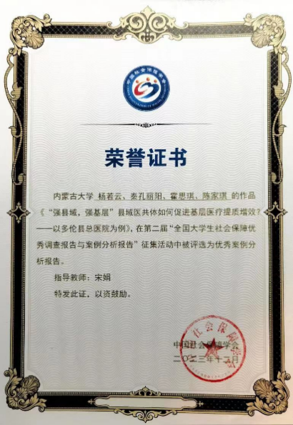 劳动与社会保障专业2021级学生在全国大学生社会保障优秀调查报告与案例分析报告大赛中获得优异成绩
