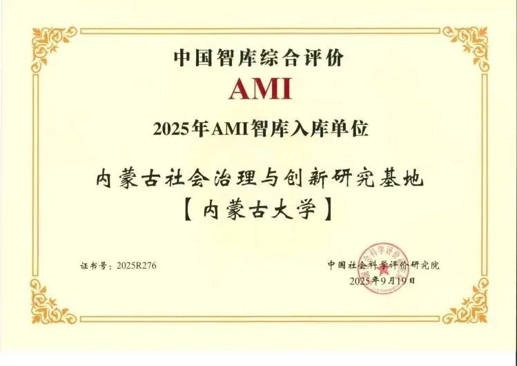 祝贺!“内蒙古社会治理与创新研究基地”入选2025年AMI智库名单