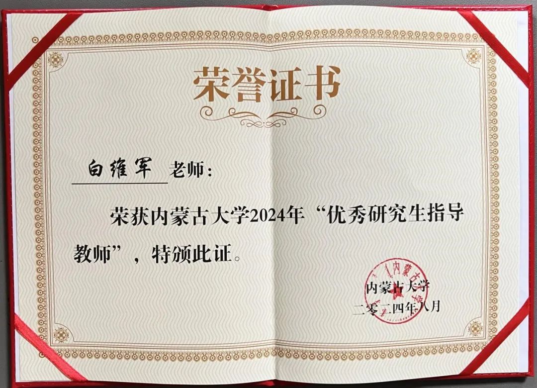 9月10日下午,我校在赛罕校区学术会议中心8号会议室召开以“大力弘扬教育家精神,加快建设教育强国”为主题的第40个教师节庆祝大会,隆重表彰永利官网“第十四届校长励学奖”获得者、“卓越教学奖”获得者和“优秀研究生指导教师”获得者。校长武利民、校党委副书记乔彪,副校长杜晓东、达胡白乙拉,以及受表彰教师代表,相关职能处室、学院负责人,新引进教师代表,学生代表等参加会议。副校长周建涛主持会议。我院白维军教...